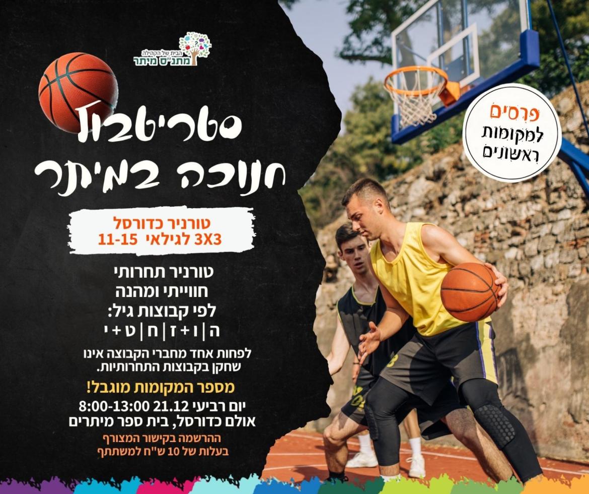 טורניר כדורסל חוויתי נושא פרסים בחלוקה לקבוצות גיל.