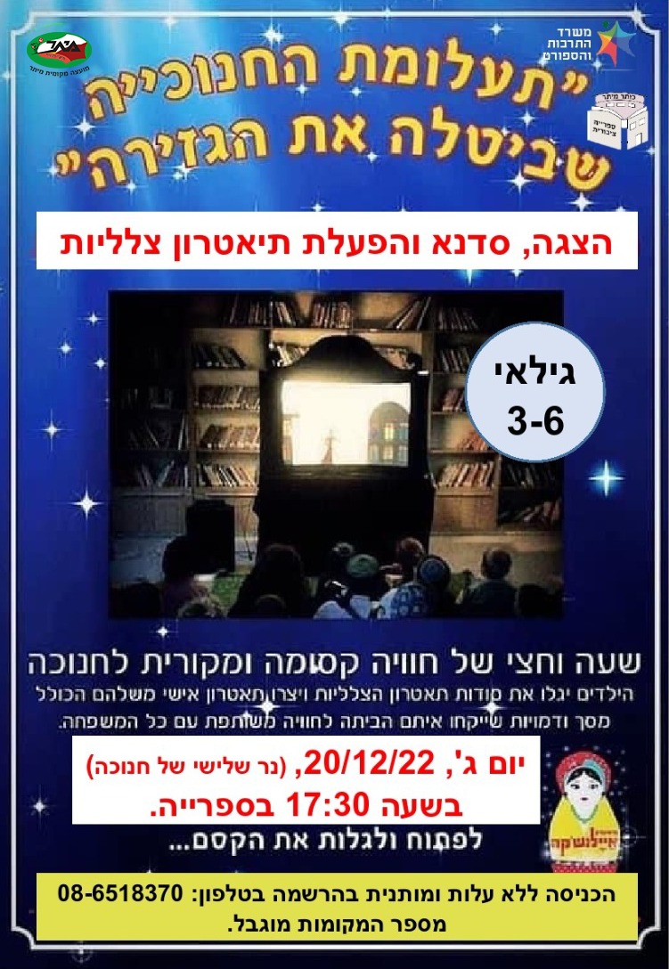 ספריית מיתר מזמינה להצגה ולהפעלה המקסימה "תעלומת החנוכייה שביטלה את רוע הגזירה".
