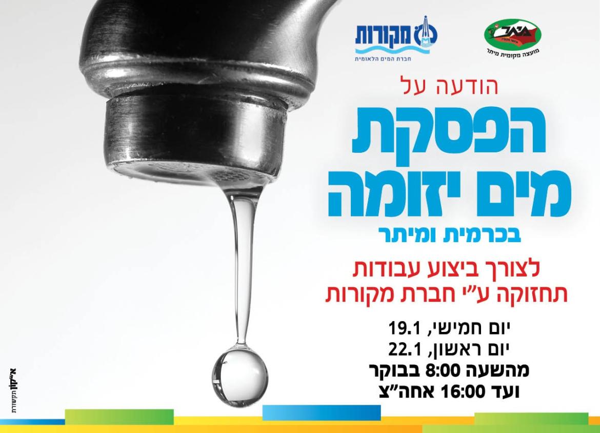 אנו נערכים לשתי הפסקות מים ממושכות במיתר ובכרמית: