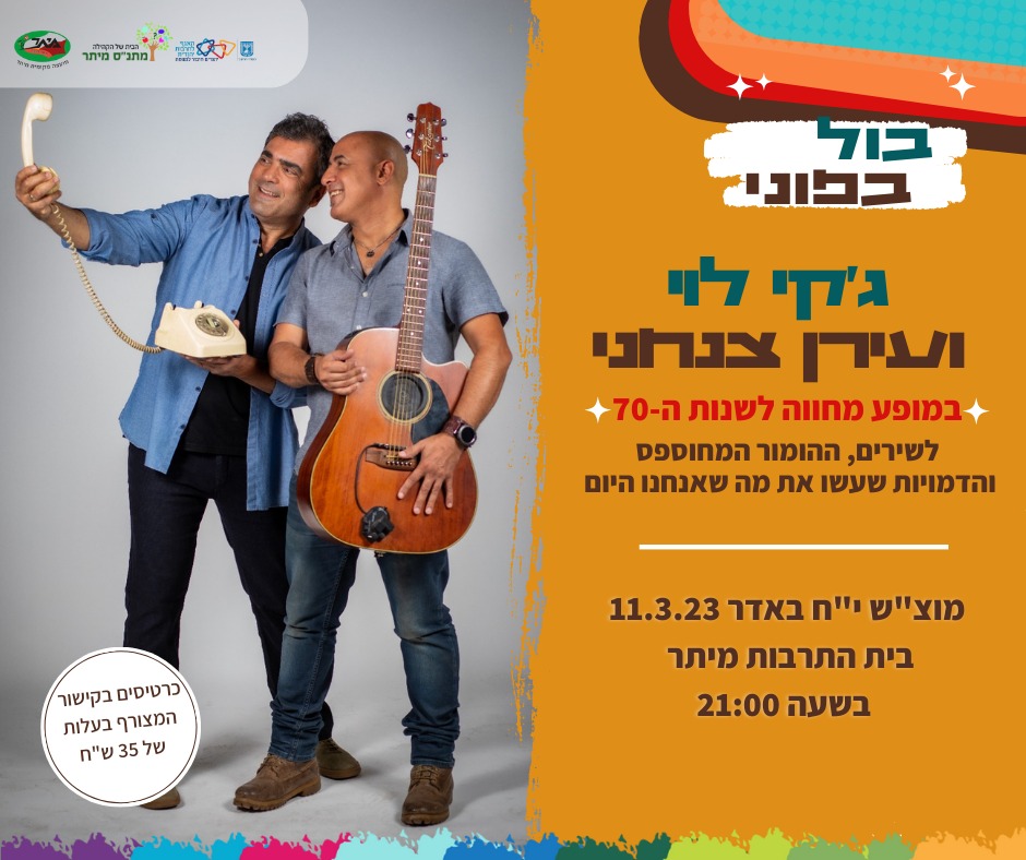 המופע יתקיים במוצ"ש, י"ח באדר 11/3/23, בשעה 21:00 בבית התרבות.
